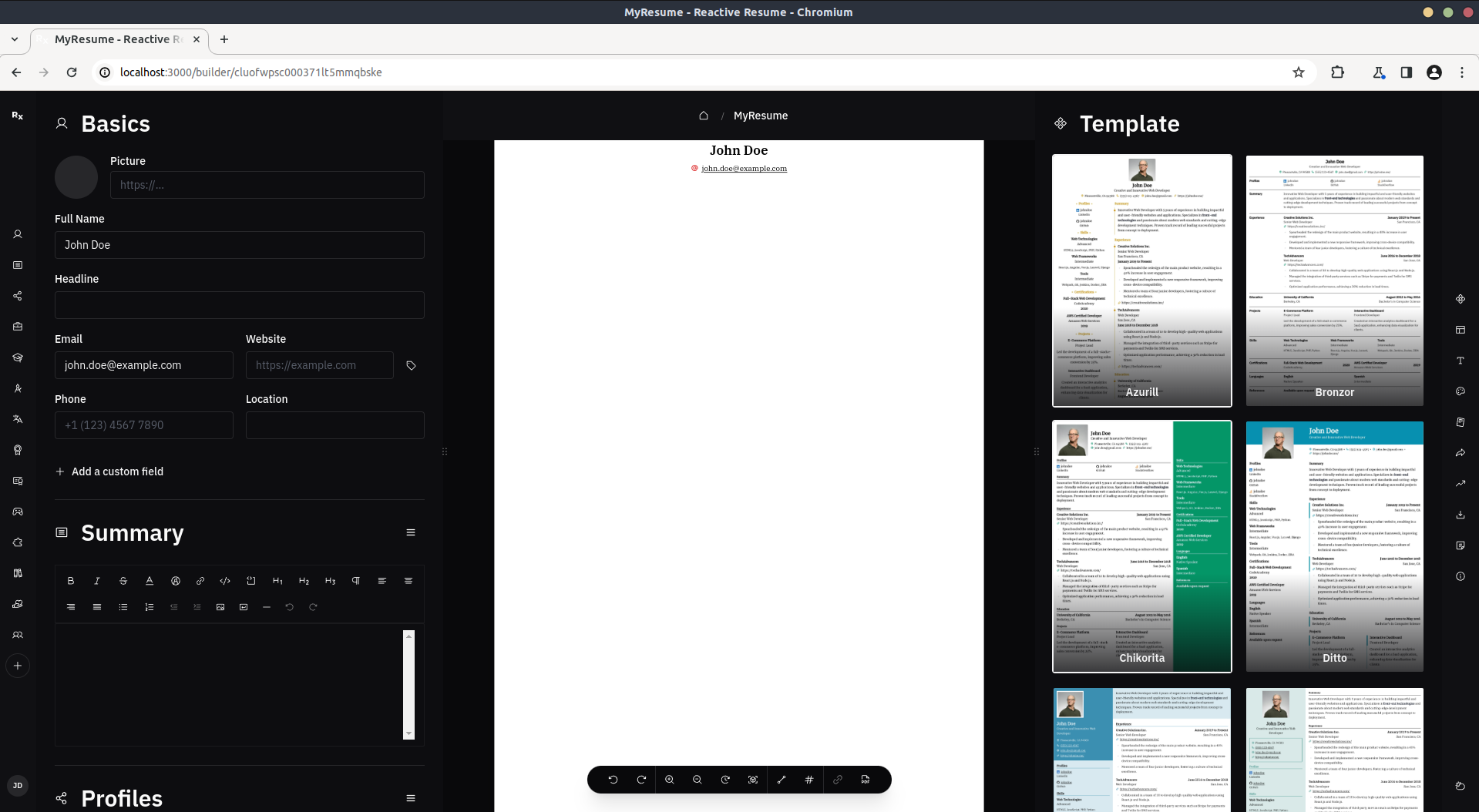 Reactive/Rx Resume is a free and open-source resume builder that simplifies the process of creating, updating, and sharing your resume. You can either use the online version or the docker version that you can self-host on your web server or spin up locally to build your resume.