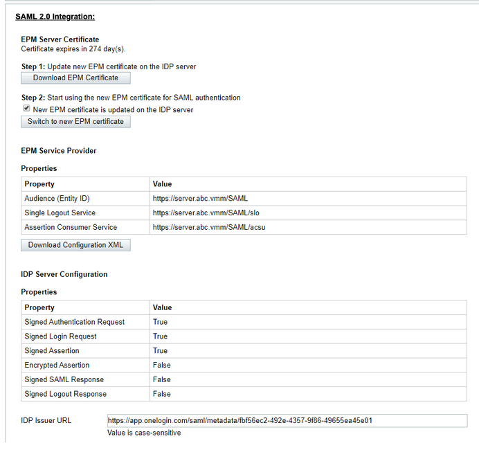 The first step is to secure and ease the access to the EPM Admin Console. For this you can configure authentication via SAML from your Identity Provider, enforce SSO for all users beside admin account to access the login URL as a break glass account.