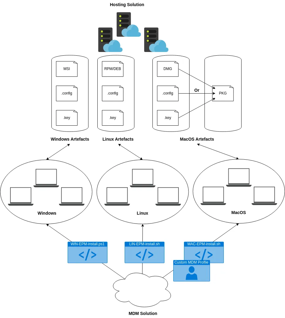 The second step is to prepare the installation of the EPM agent on your fleet of devices through your device management solution, the installation should be seamless in terms of user experience and the installation needs to be automated.