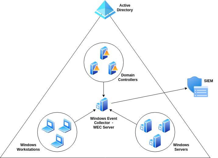 To get there, we’ll start by configuring Group Policy Objects (GPOs) on your Windows machines (domain controllers, servers, and workstations) to ensure they’re collecting the right types of events, such as login attempts, policy changes, and security logs. Then, we’ll set up the Windows Event Collector (WEC) server, which will act as a central hub, receiving logs from all your Windows machines configured as Event Forwarders.