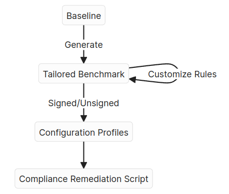 This tool is built on the foundations of the macOS Security Compliance Project and allows you to generate mobile config files for custom MDM policies with all the selected rules. Different compliance profiles are available: CIS Benchmark, NIST-800-171, NIST-800-53, DISA STIG which can also be tailored to your specific environment. For MacOS, it is necessary to run compliance remediation shell scripts because not all settings can be enforced by mobileconfig files.