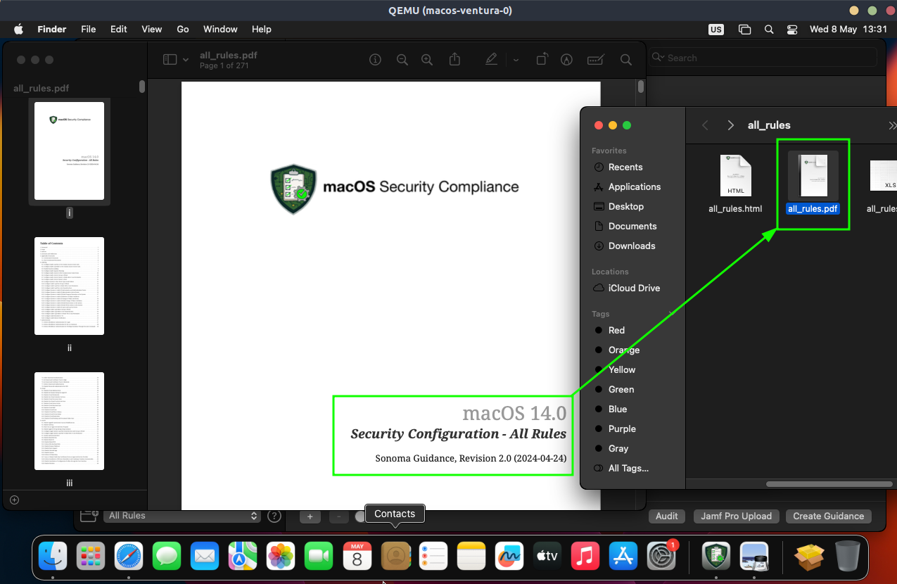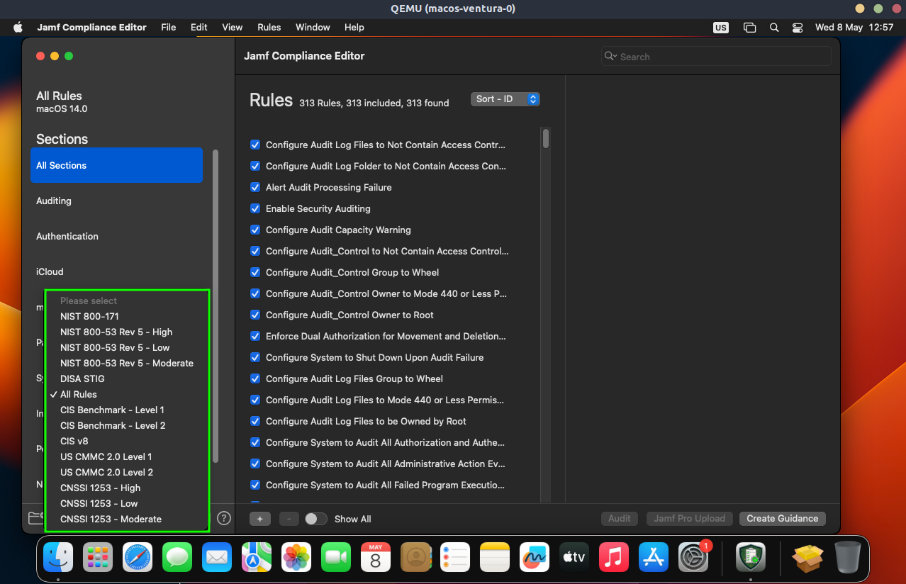 The MacOS Security Compliance Project (mSCP) is an open source framework for programmatically generating security guidance. This project contains security baselines of technical security controls such as CIS Benchmark, NIST-800-171, NIST-800-53, DISA STIG which can be adapted to the specific needs of any organization. The workflow is quite simple: