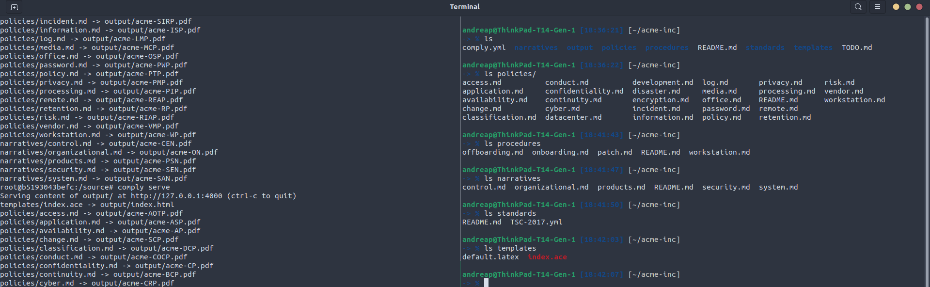 docker run --rm -v "$PWD":/source -p 4000:4000 -it strongdm/comply