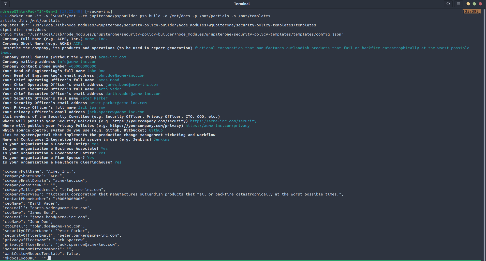 $ docker run -it -v "$PWD":/mnt --rm jupiterone/pspbuilder psp build -o /mnt/docs -p /mnt/partials -s /mnt/templates